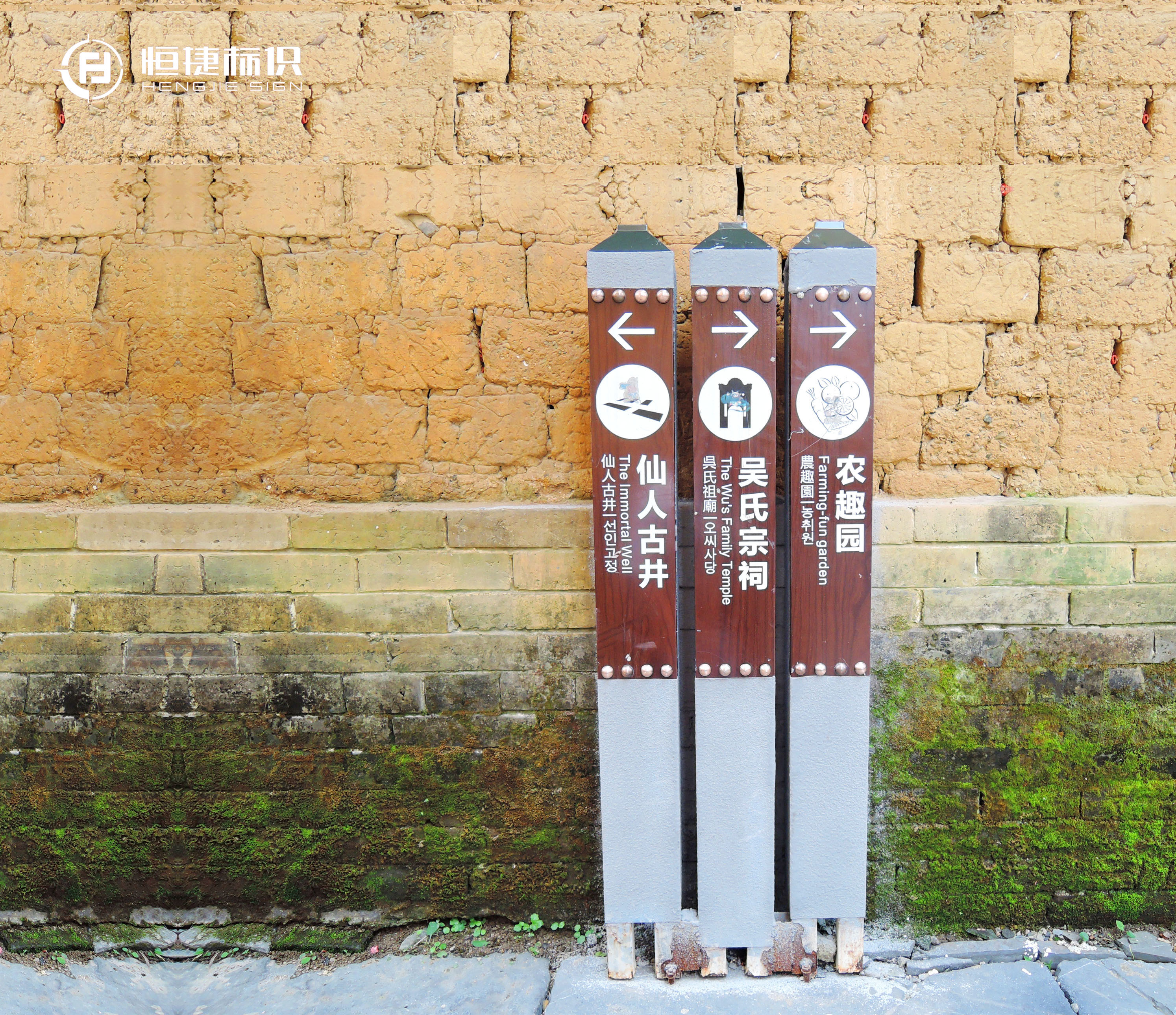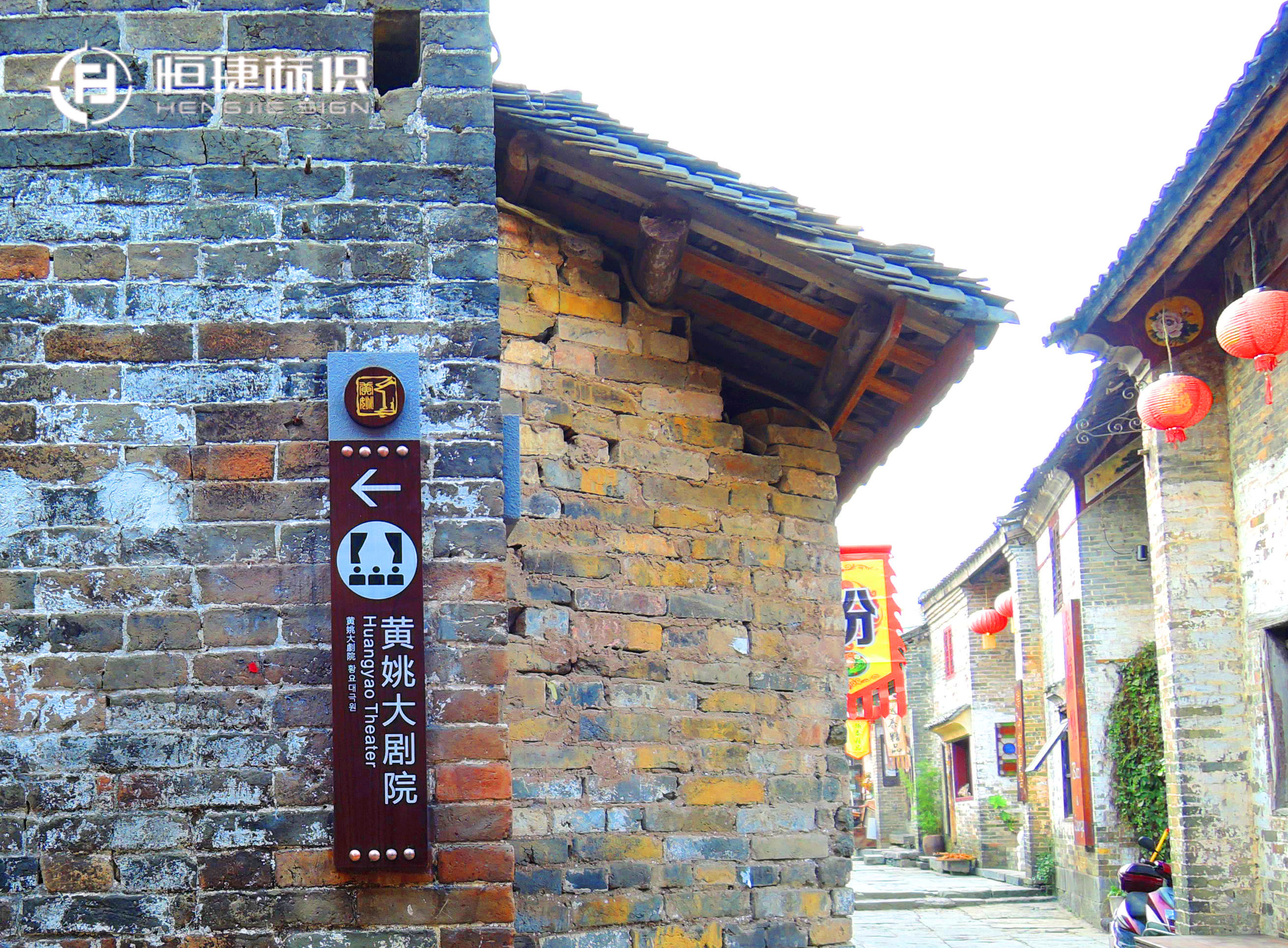 還有那一張張明清時期的香煙、藥品廣告,雖已殘破斑駁,卻仍然固守在-墻上-昭示著古鎮曾經的繁華與喧囂。穿過金德街就是迎秀街,經過街巷相連處的拱門時,細瞧一下就會發現青石板上有碗口大小、連成一排的小洞,據說這是當年安放閘門、防御外敵用。